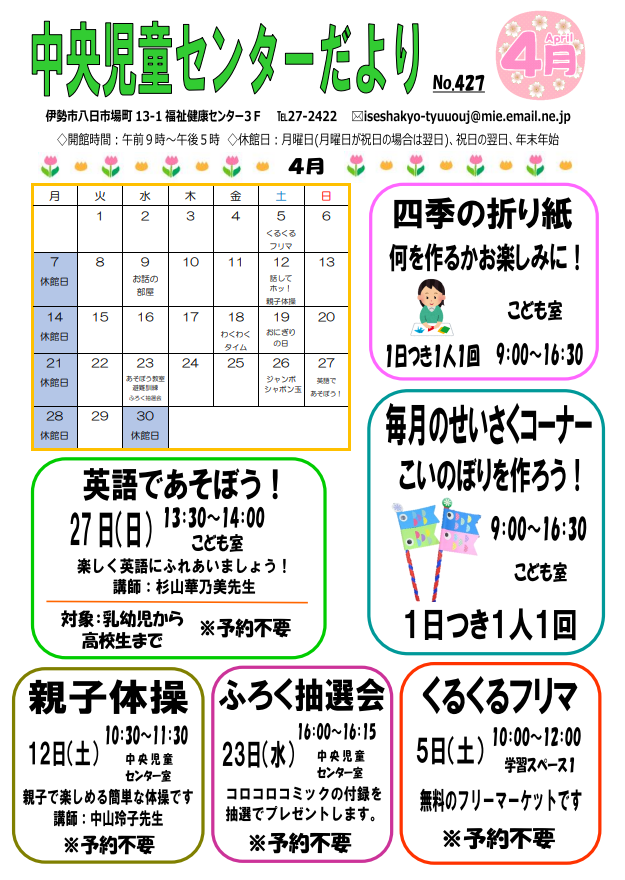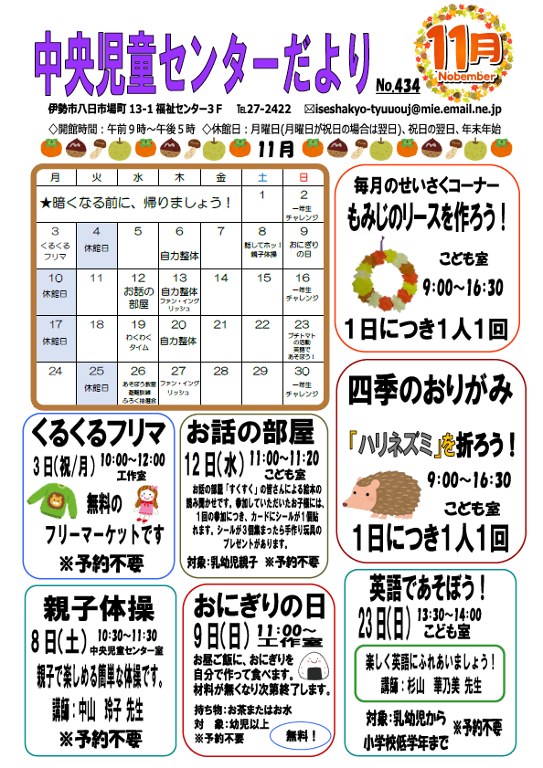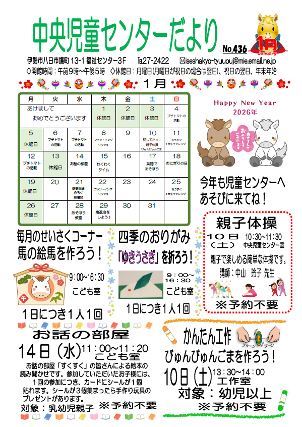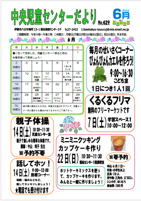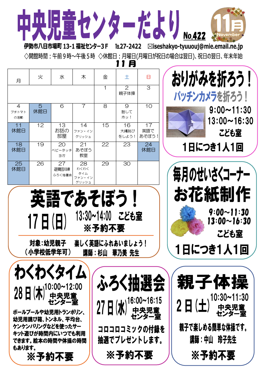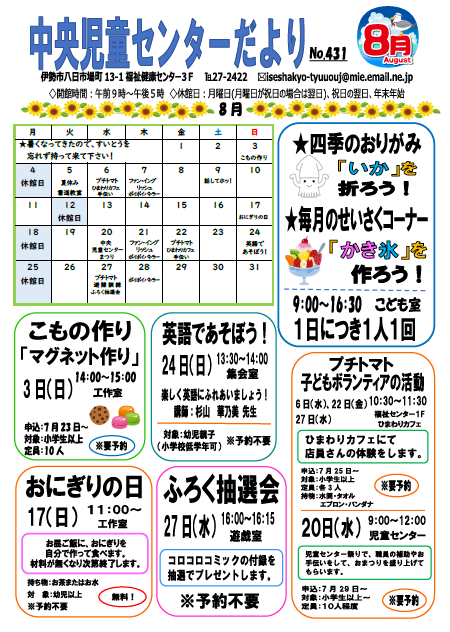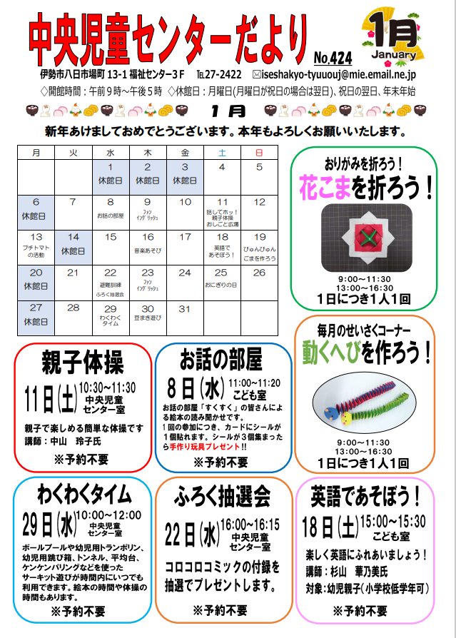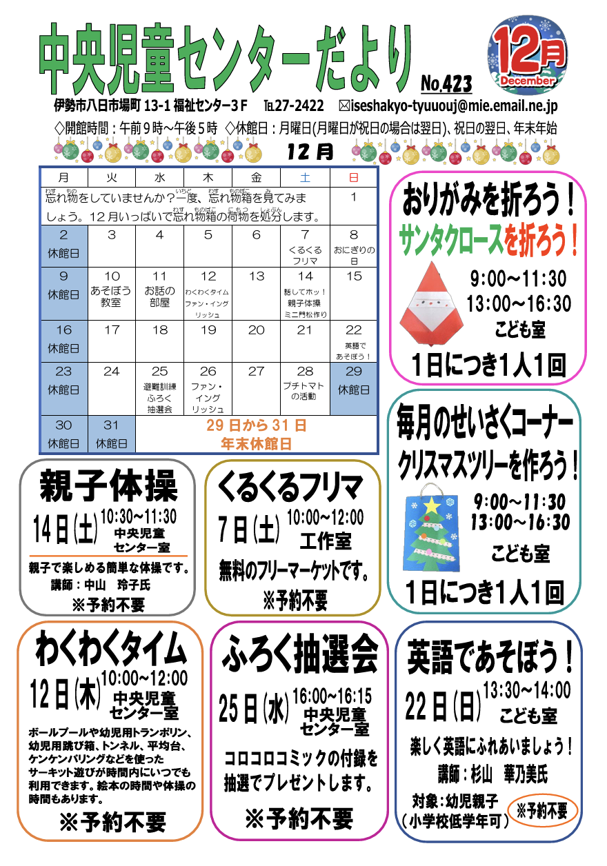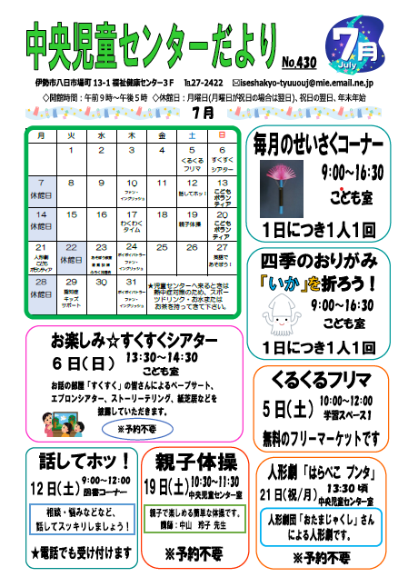 中央児童センターでのイベントを掲載しています。皆さんご参加くださいね。