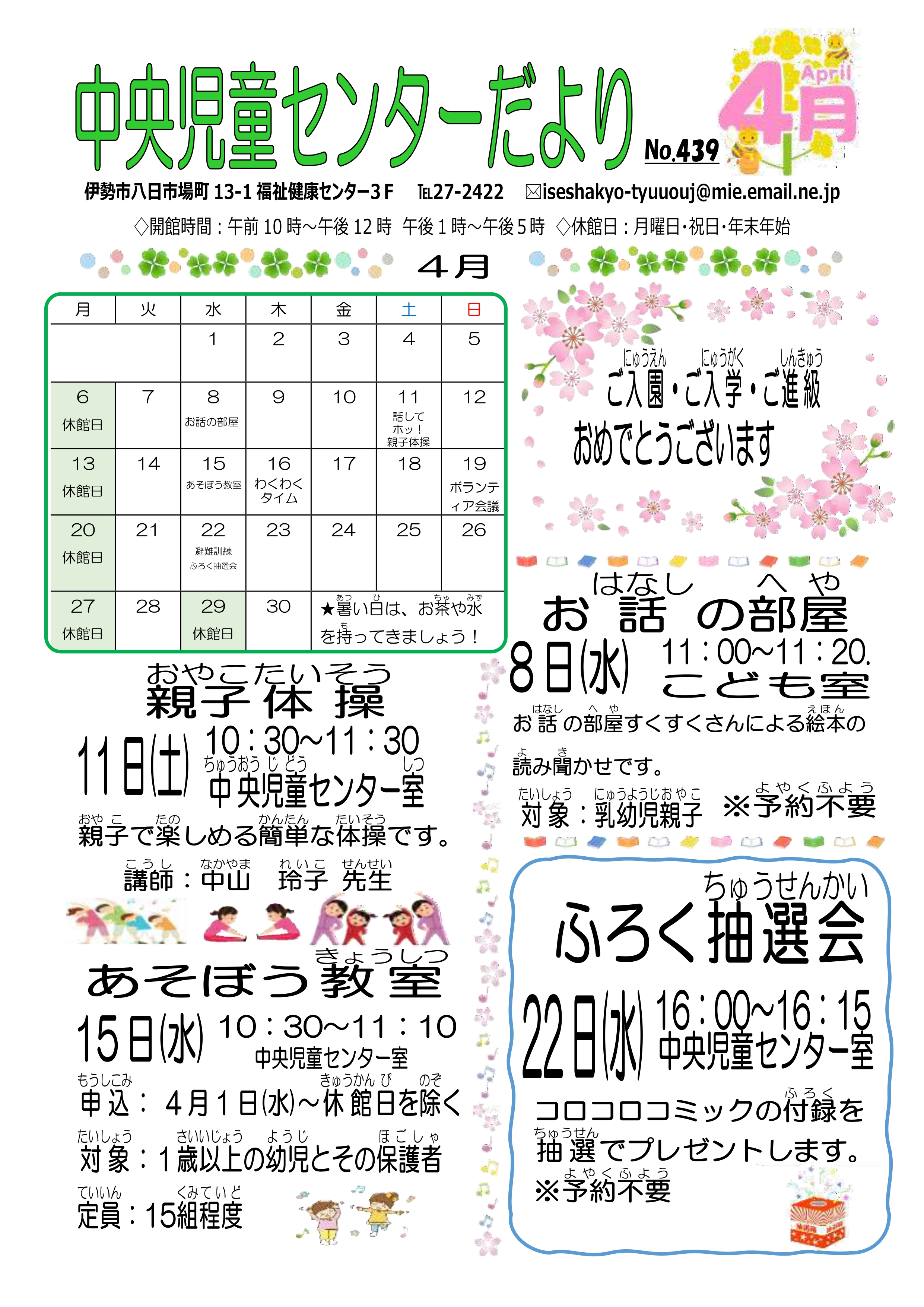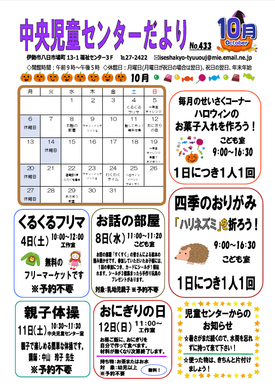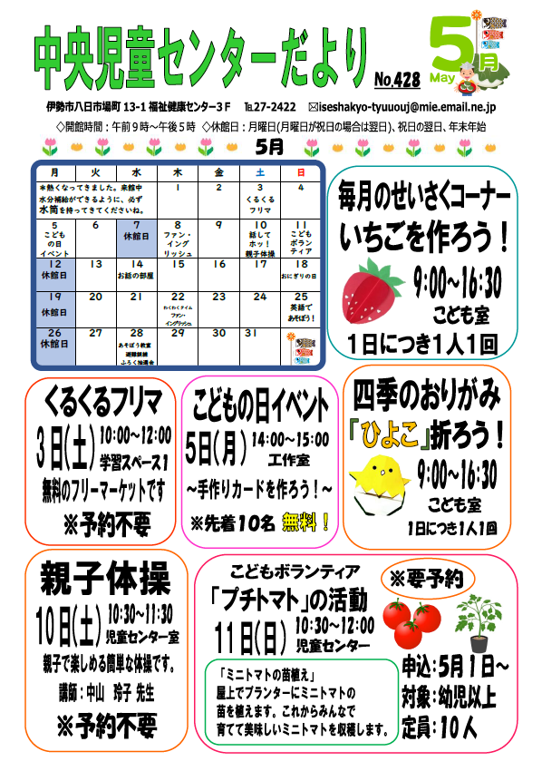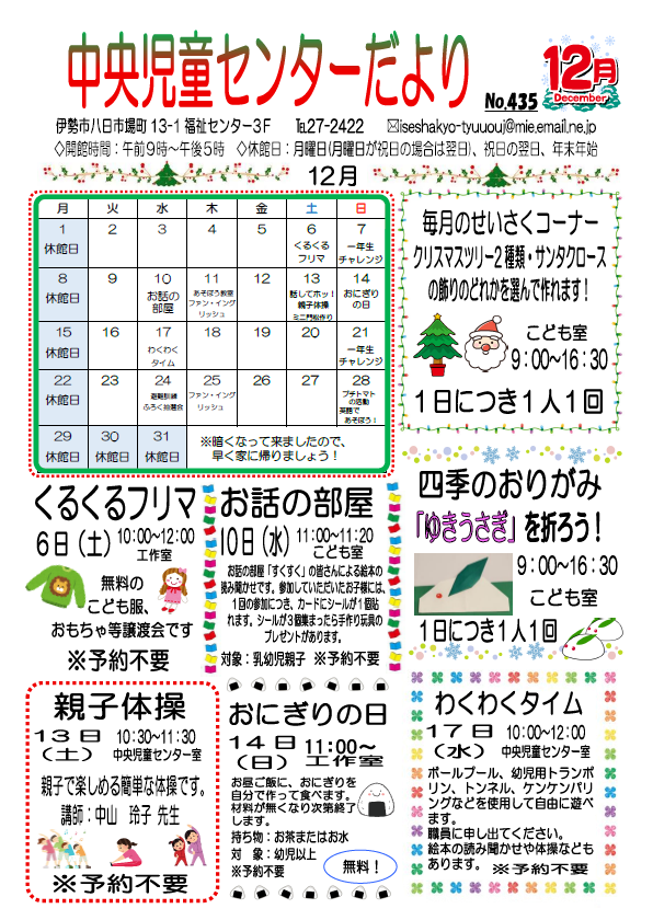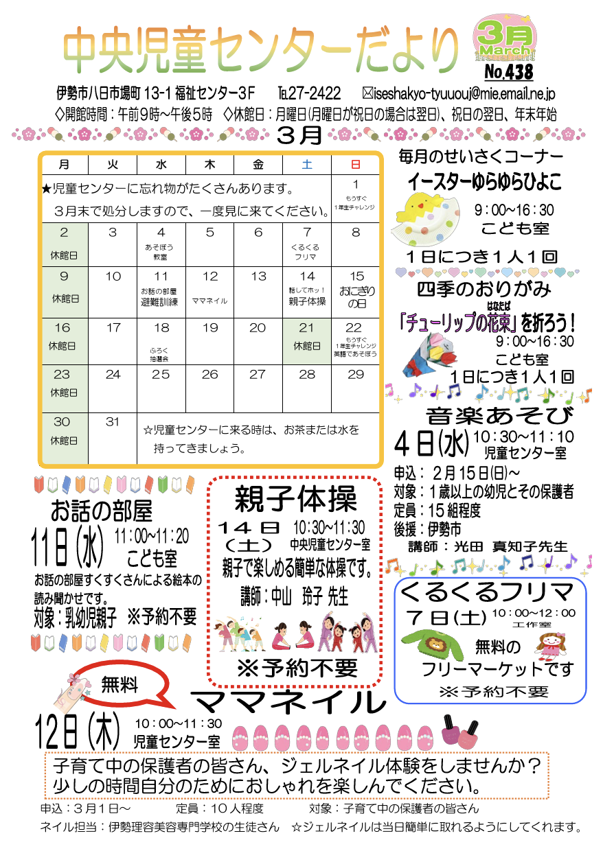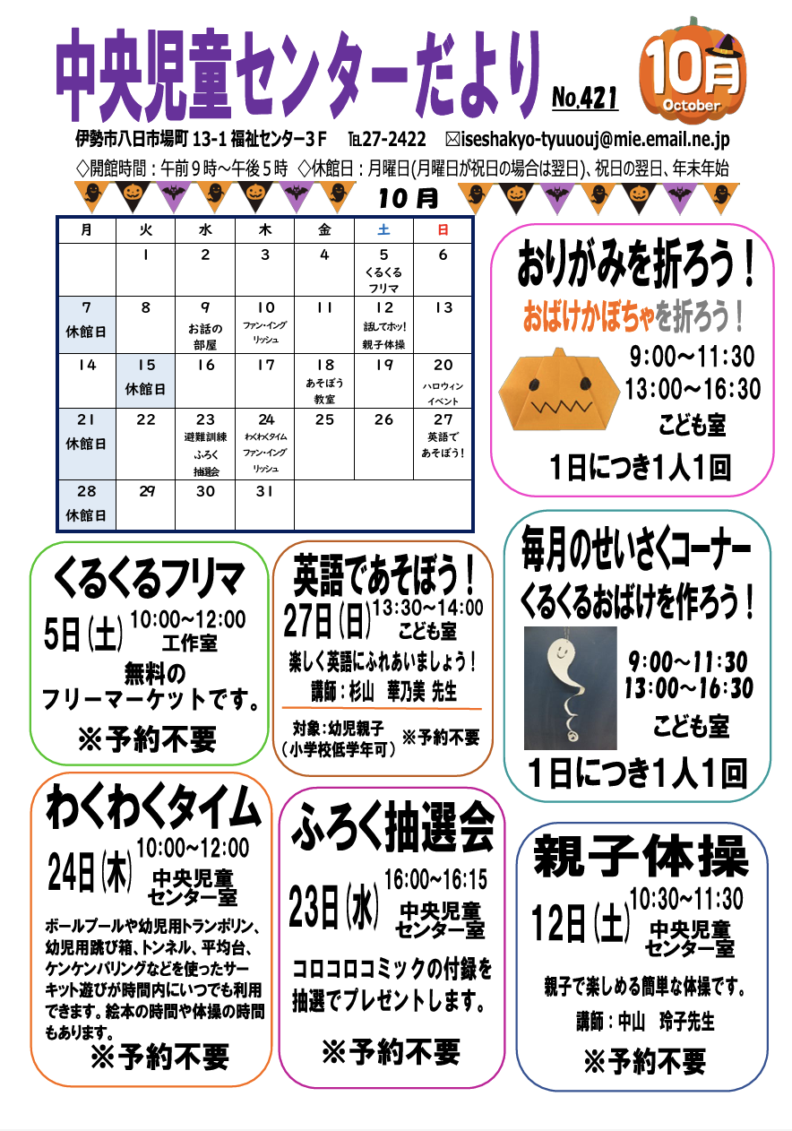 中央児童センターでのイベントを掲載しています。皆さんご参加くださいね。