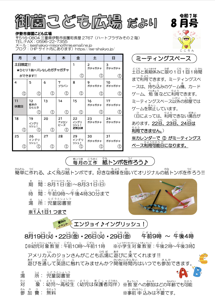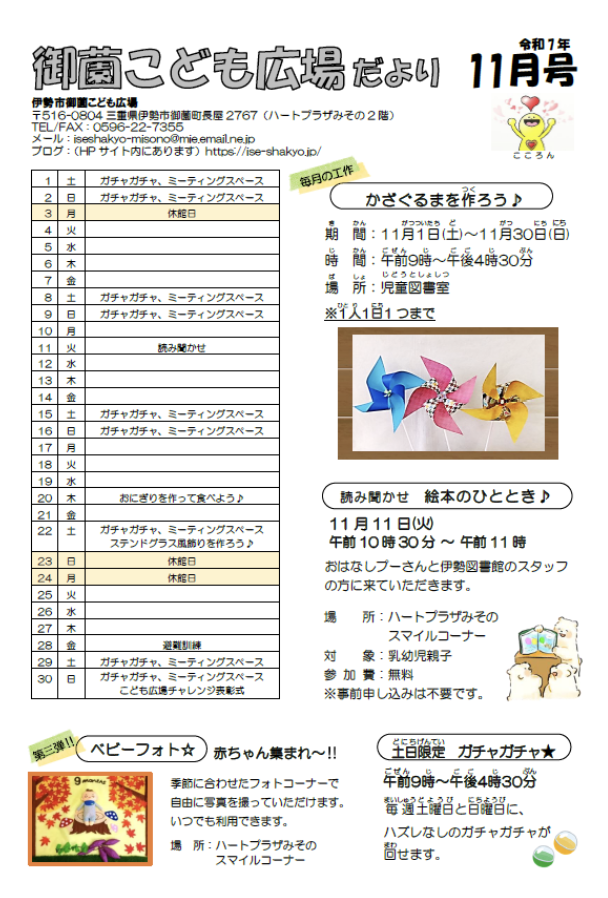 御薗こども広場でのイベントを掲載しています。皆さんご参加くださいね。