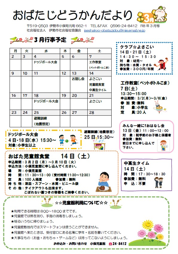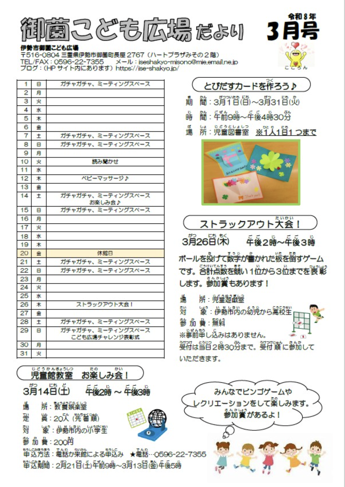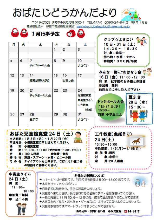 小俣児童館でのイベントを掲載しています。皆さんご参加くださいね。