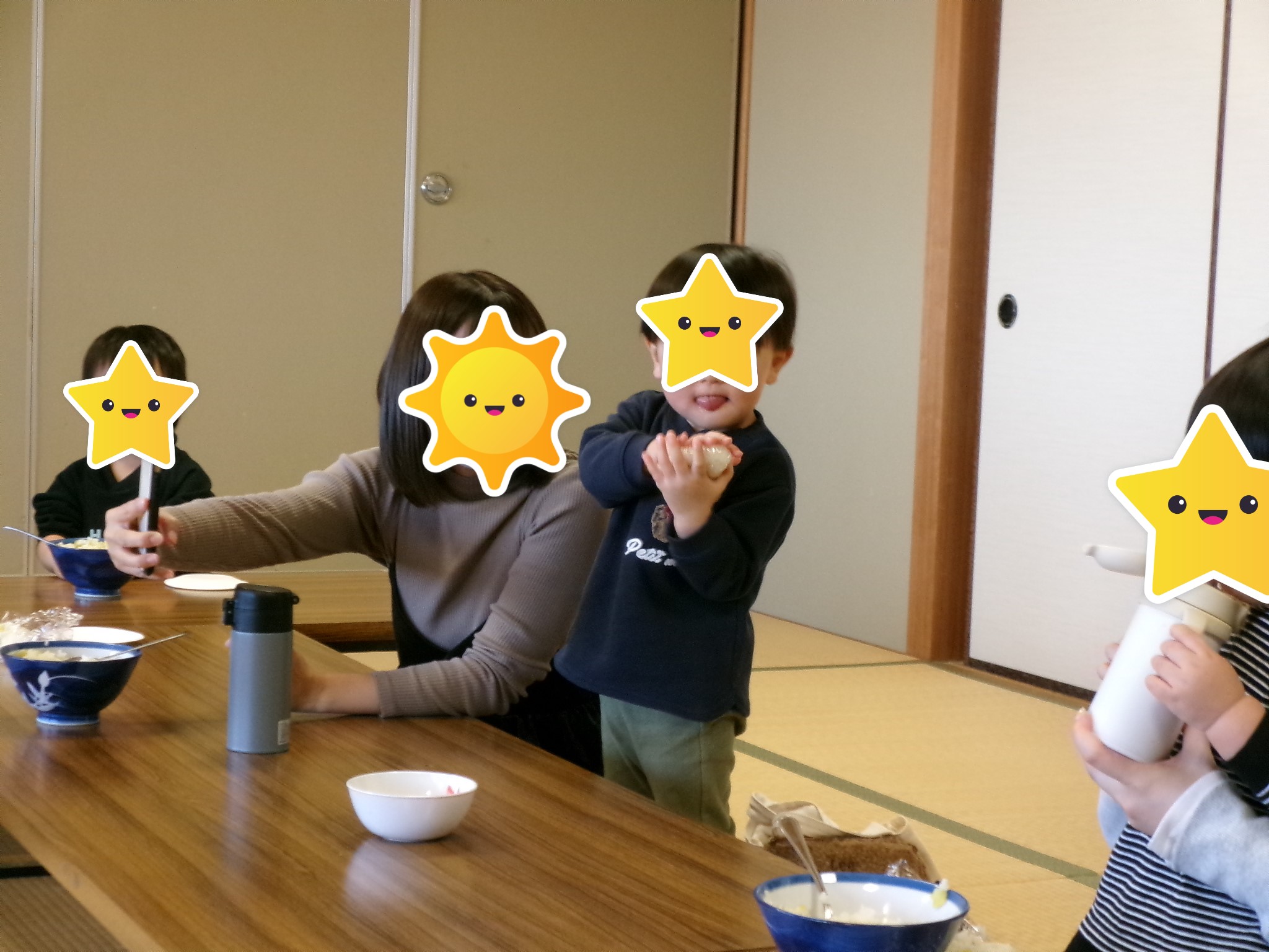 ハートプラザみそのニュース 御薗こども広場*おにぎりを作って食べよう♪ 2025年11月21日 こんにちは!御薗こども広場です11月20日(木)、1歳半以上の親子を対象にさつまいもごはんでおにぎりを作って食べましたその前に、手あそびや紙芝居、おにぎり作りのペープサートも楽しんでいただきましたよそして、お楽しみのおにぎり作り さつまいもごはんをラップに包んでにぎります1人で張り切って作る子もいましたよみんなパクパクおいしそうに食べてました次回は、12月7日(日)「クリスマス会」です。サンタさんも来ますよお楽しみに