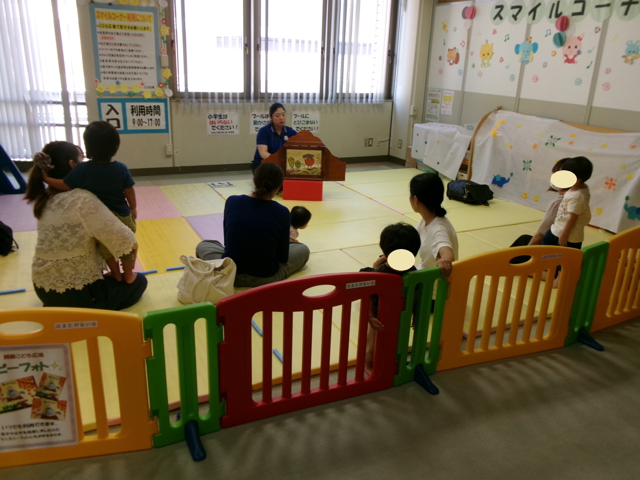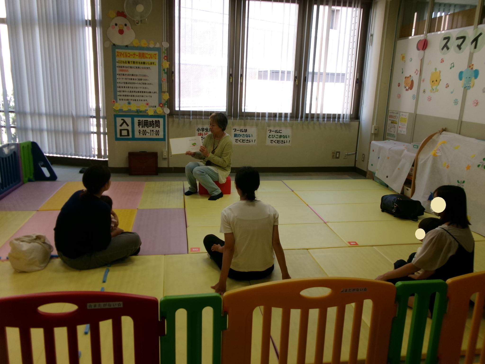 読み聞かせの合間には、触れ合い遊びやわらべ歌もあり、こどもたちは、飽きることなく最後まで楽しむことができました