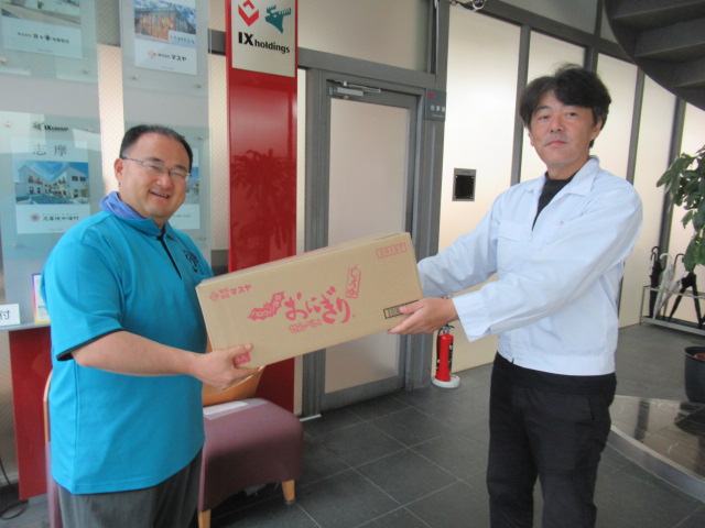 小俣児童館 マスヤ様から「おにぎりせんべい」をいただきました(10月15日)