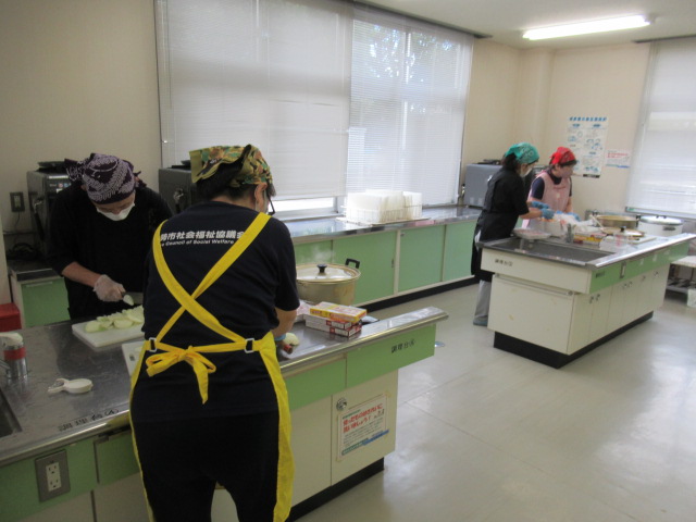 9月も27日(土)に「おばた児童館食堂」を開催しました。児童委員民生委員さん3名のご協力の下、約100人分のおいしいカレーライスを調理し、子どもたちに提供しました。