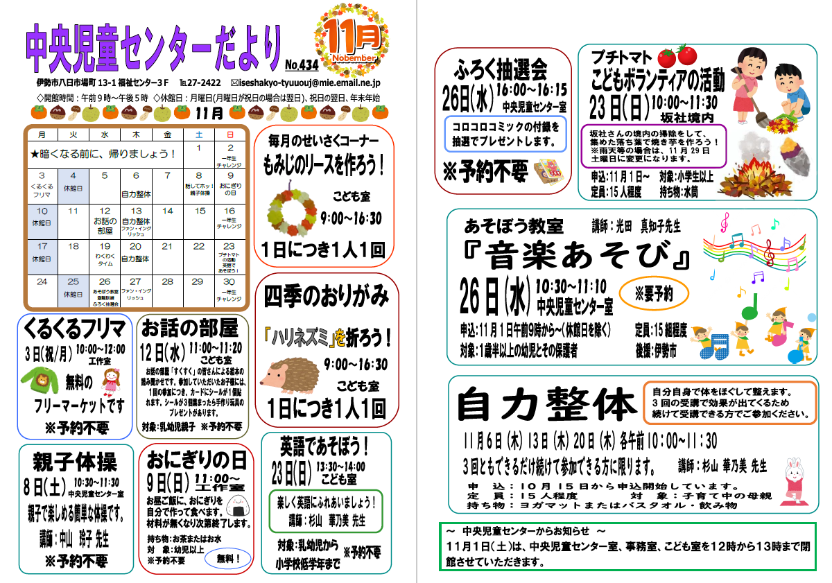 11月も中央児童センターにたくさん遊びに来て下さいね