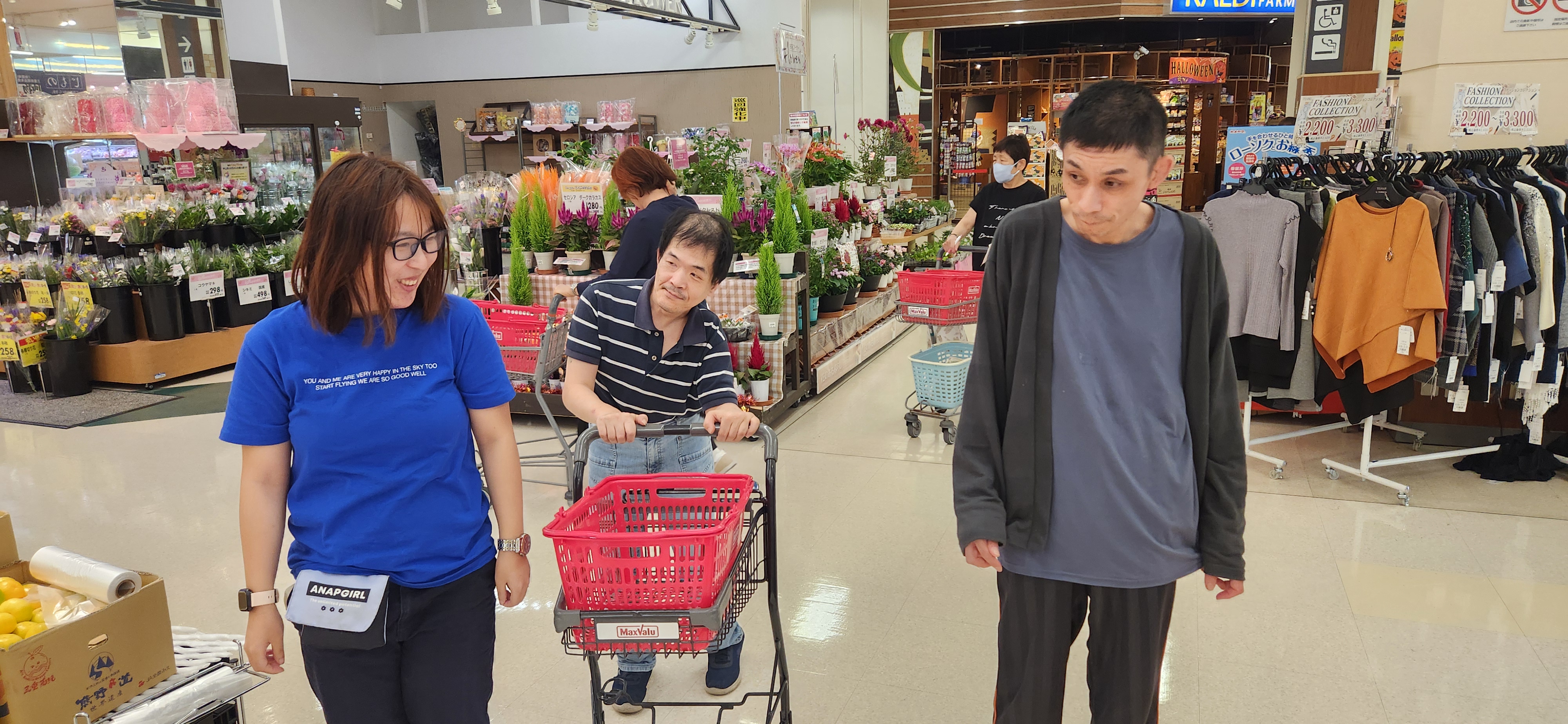 一般お知らせ 伊勢市ひまわりの活動についてNo8 2025年10月10日 ひまわりCaféの買い出しに、イオンタウン伊勢ララパーク店へ利用者と一緒に行ってきました。Caféの運営のため利用者みんなが協力しています。 セルフレジもお手のもの♪ 途中にハロウィンのフォトスポットがあったので、帽子をかぶって撮影もしてみました。最高の笑顔で「はい、チーズ」