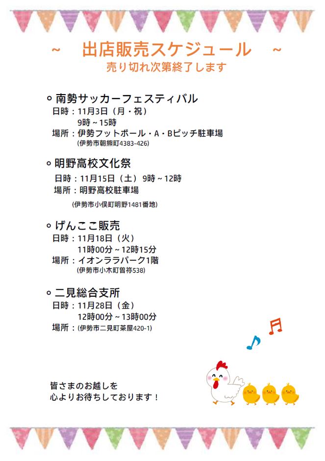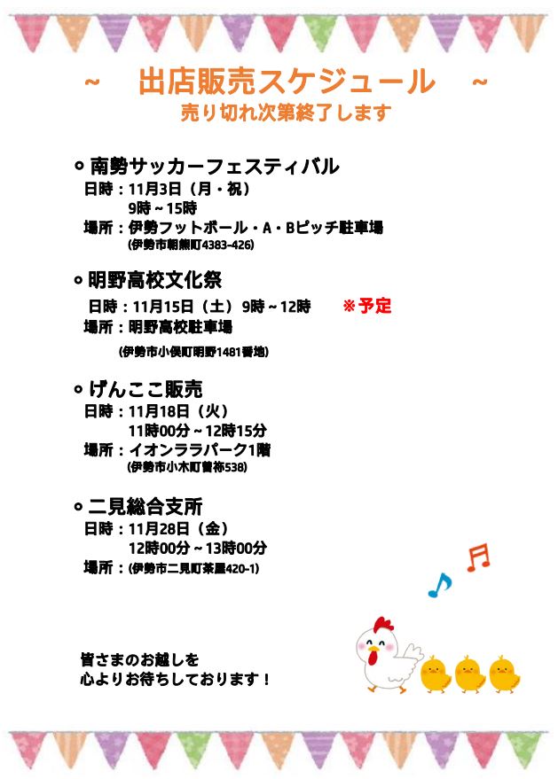 一般お知らせ, 注目情報 【二見工房そみん】菓子販売を行います! 2025年10月28日 二見工房そみんで製造したお菓子を下記日程で販売します。 詳しくは下記チラシをご覧ください。 在庫がなくなり次第終了となります。たくさんのご来場お待ちしております。 二見工房そみん 販売チラシ:(PDF410KB)出店スケジュール:(PDF291KB) げんここるーむについてはこちらからご確認ください。
