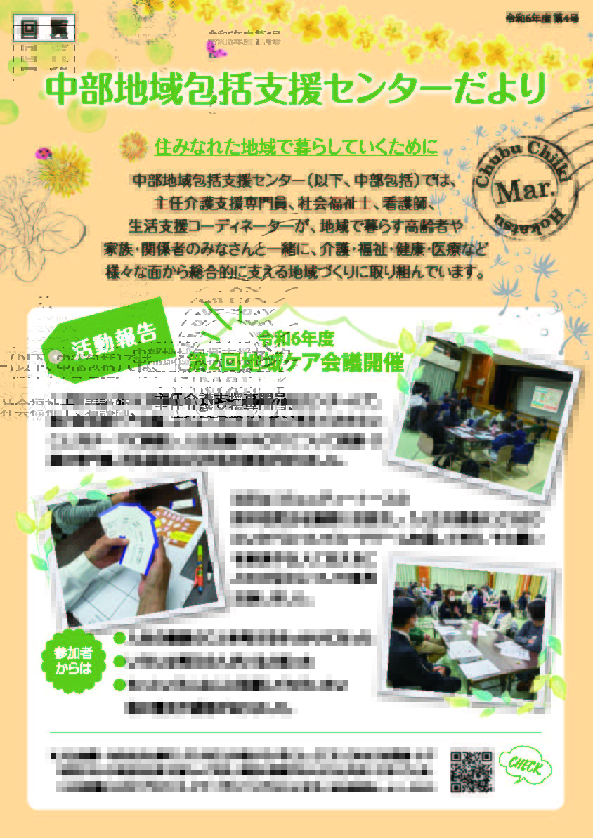 地域の基盤を整えるとともに個々の介護支援専門員が包括的・継続的なケアマネジメントができるようにサポートを行います。