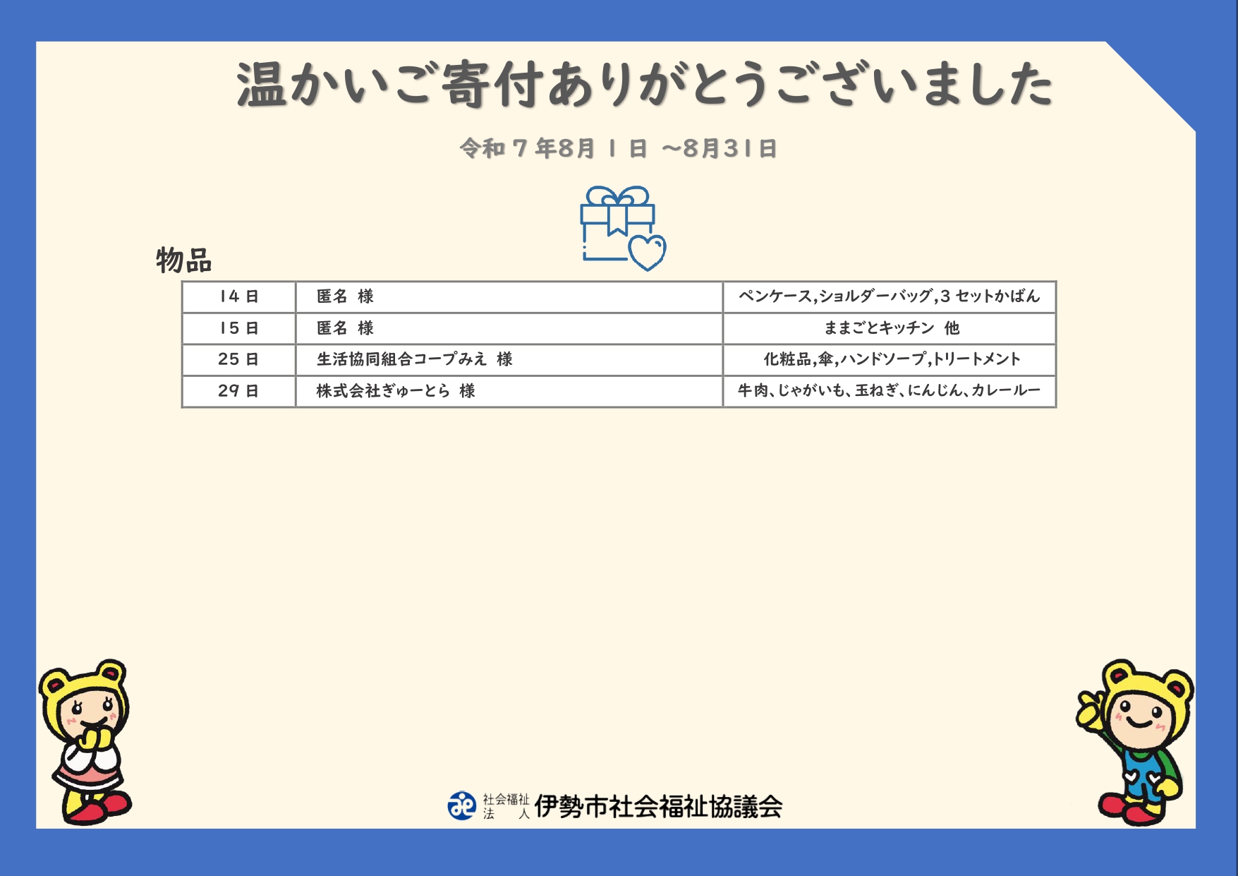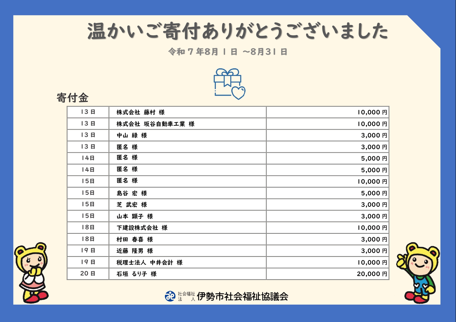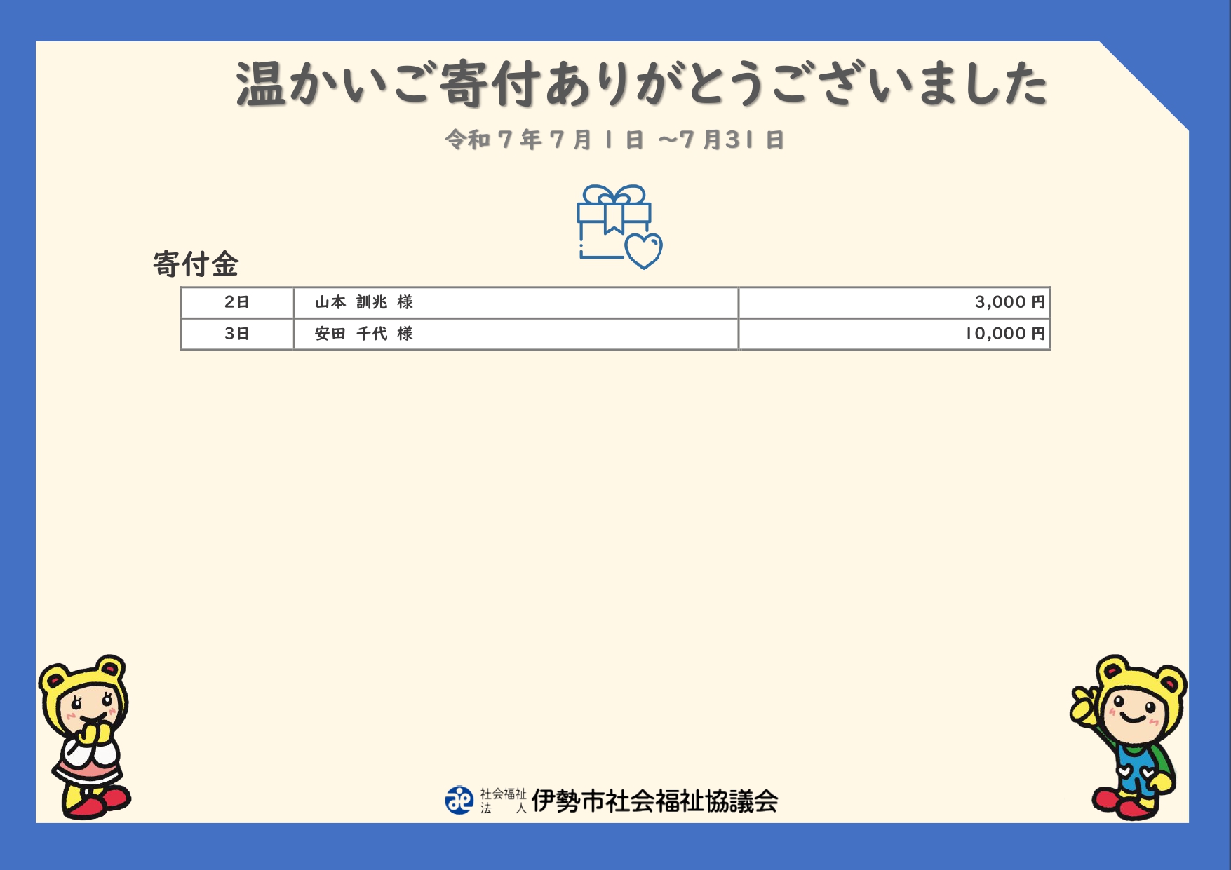 ❤ご寄付をいただいた方々❤ ありがとうございました。
